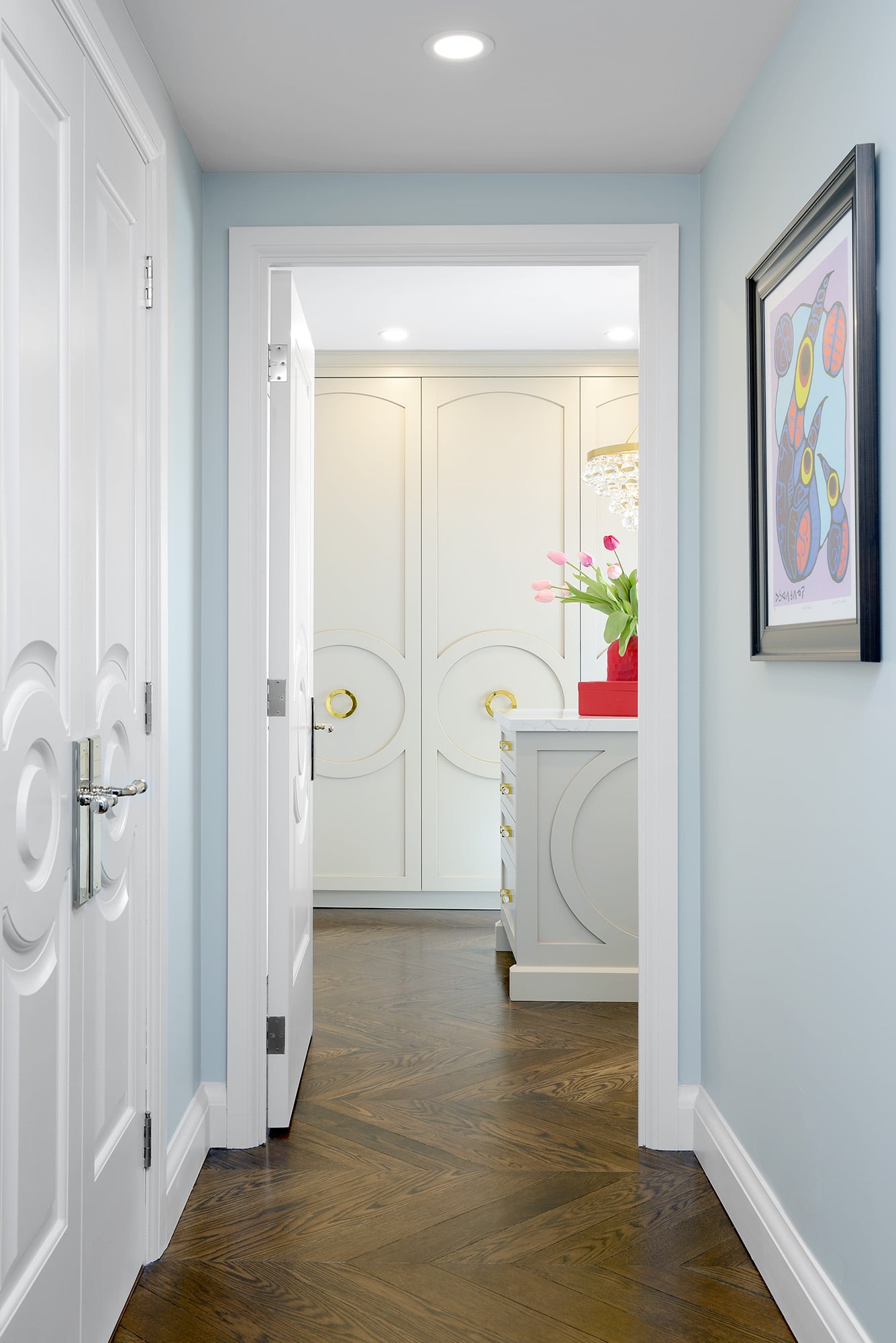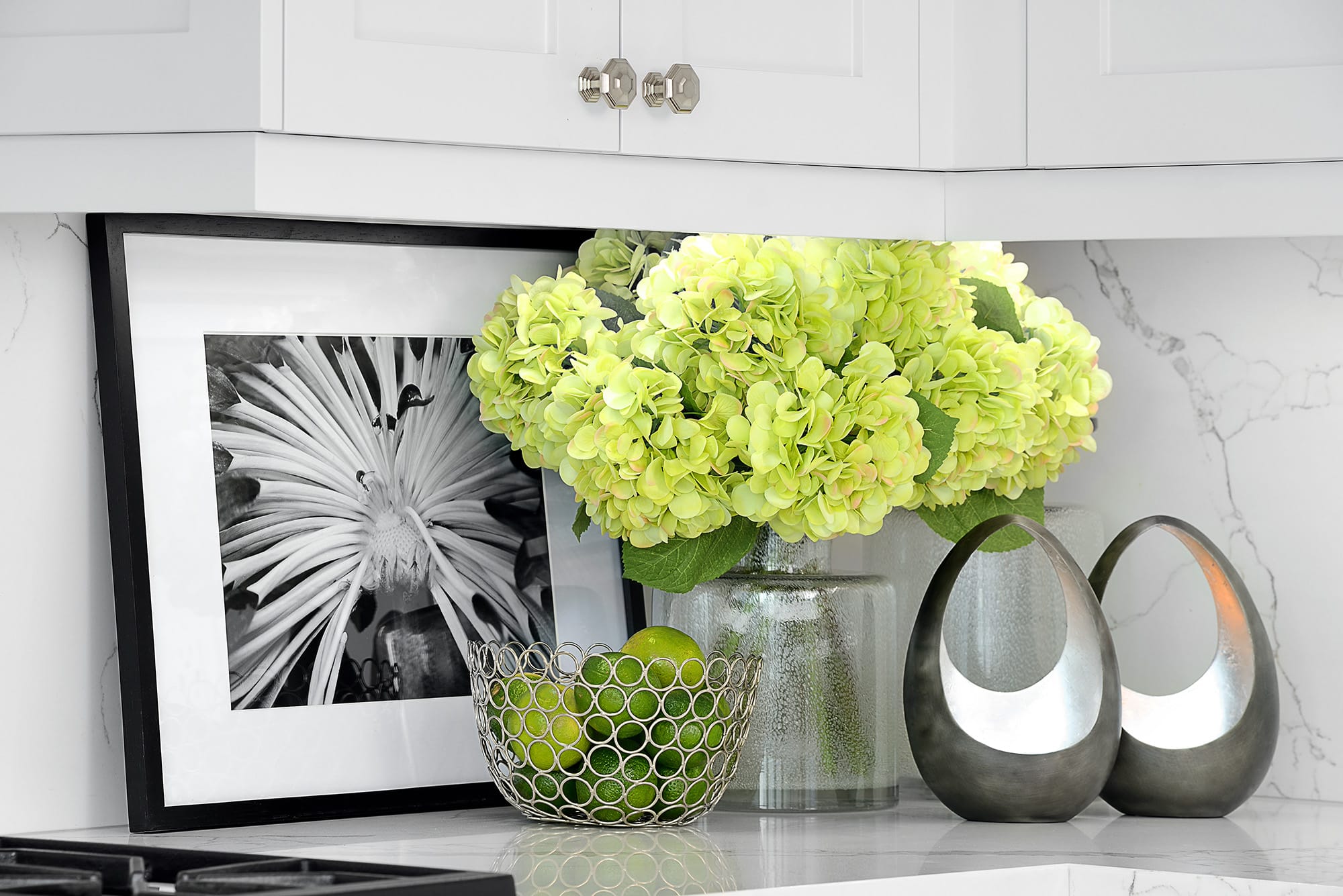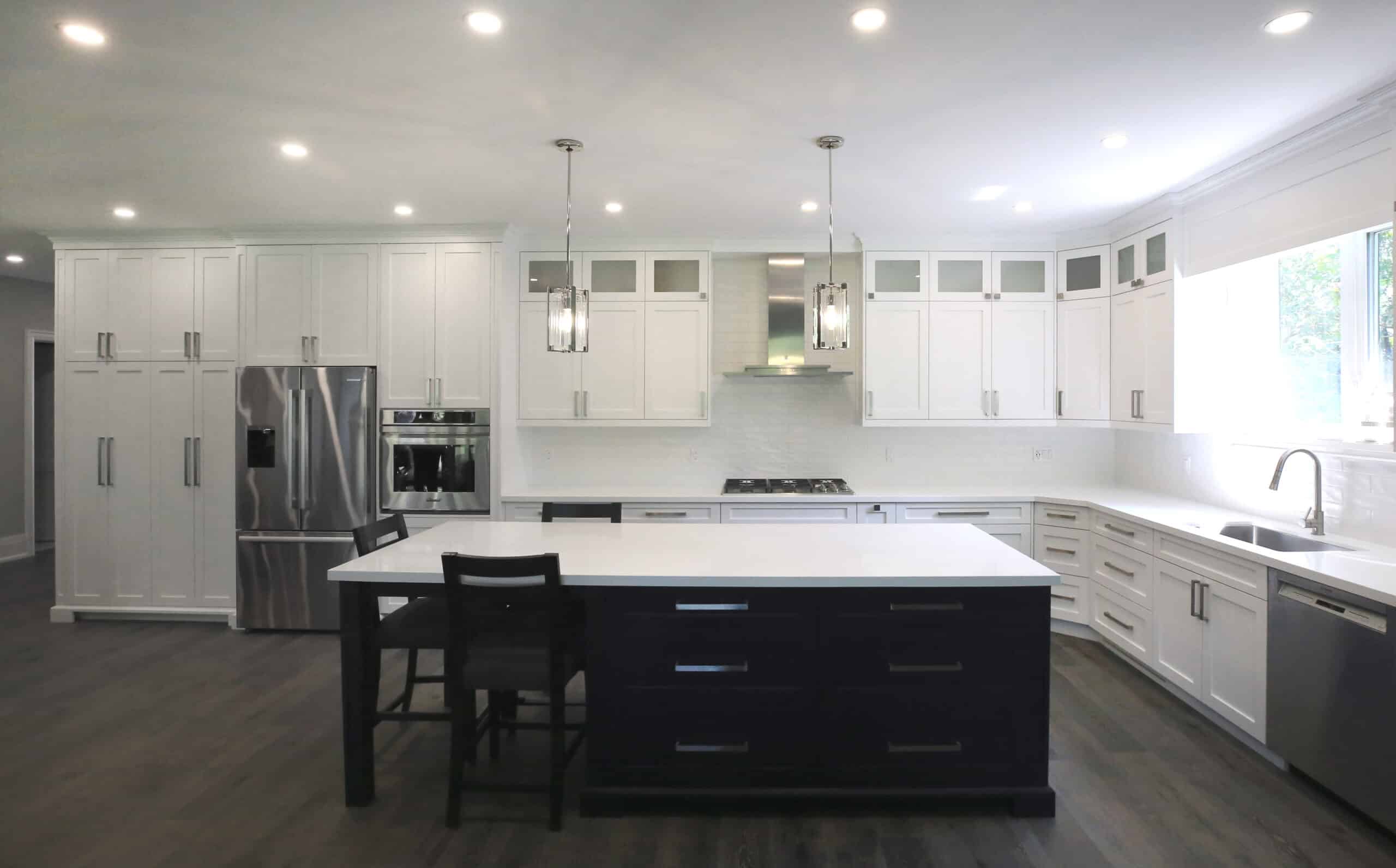 For a seamless design, we used integrated Syma 32 Black handles and Berenson Edge Pulls, which give the kitchen a clean and minimalistic feel. High-end Thermador appliances complete the look, adding both luxury and top-notch functionality to the space.